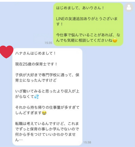 実際にLINEで仕事の悩みを相談できます!