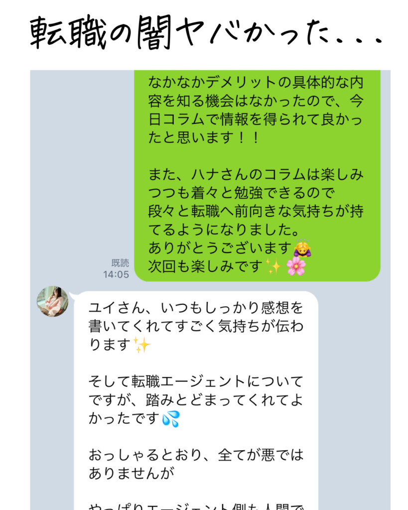 ホントに、なんで転職エージェントなんか使ったんだろう…ってハナさん自身も後悔していました。