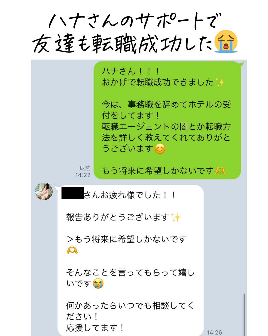 ホントに転職相談が良すぎたので、私の友達にもハナさんのLINEを紹介したら…