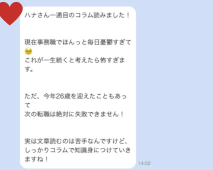 みなさんも転職は怖いと思うけど、ハナの言うおりにやってれば大丈夫です。